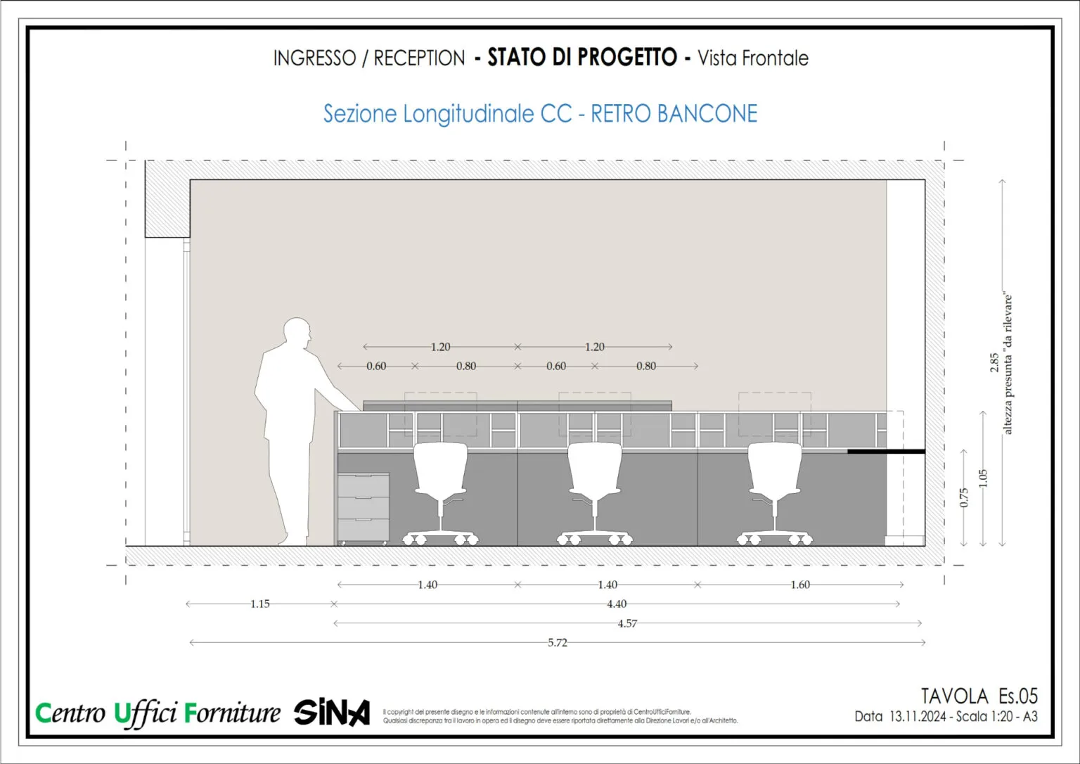 Il progetto del bancone è iniziato con un sopralluogo dettagliato, seguito da una fase di progettazione in stretta collaborazione con Soko Chimica. Grazie a un confronto continuo, è stata individuata la soluzione ottimale che rispettasse le dimensioni e la forma desiderate, oltre alla scelta dei colori più adatti per integrare l’arredo esistente. Il risultato è una postazione di lavoro tecnica che unisce efficienza operativa ed eleganza, riflettendo l’immagine innovativa di Soko Chimica.